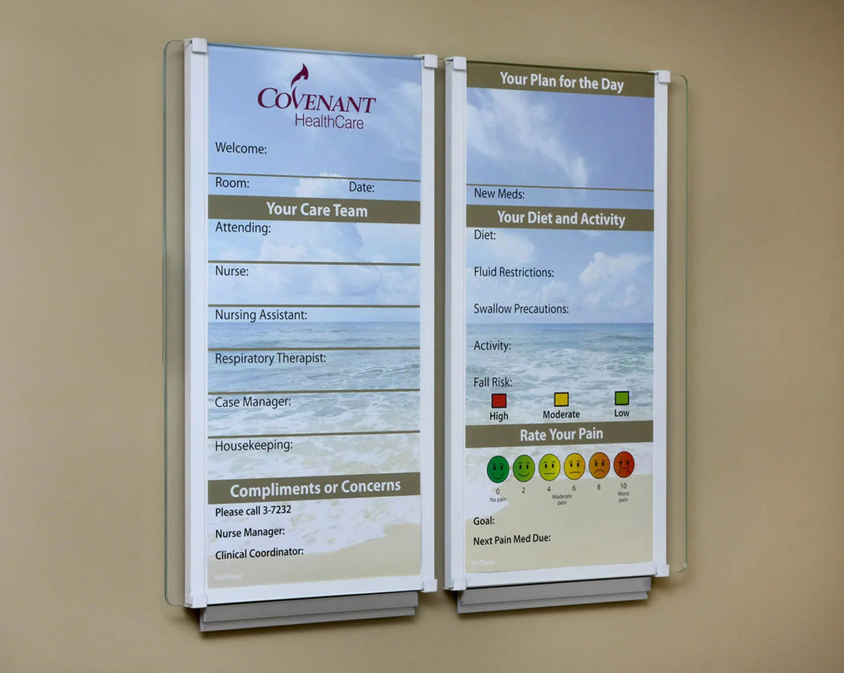 "VuEase features an outstanding payback because of its economical graphic insert replacement. When combining this with timeless design and a long life writing surface, it's easy to see why hospitals are discovering VuEase to be the last patient information board they will need to purchase."