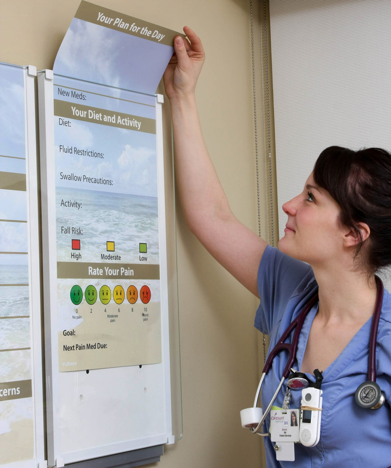 VuEase patient information boards were created in collaboration with healthcare professionals to improve the communication between patients, their family members, and caregiving staff.